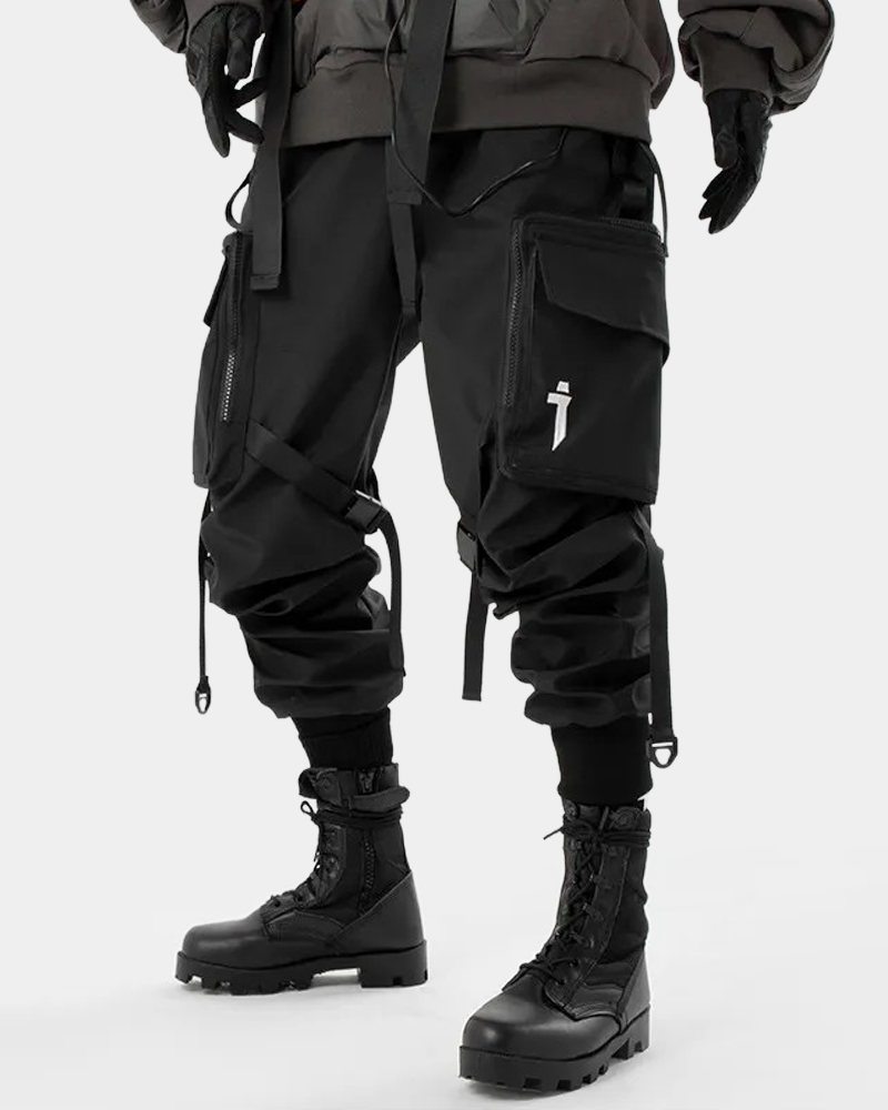 Our Cargo Pants Techwear, made from quality materials, feature embroidered logos, adjustable straps, an integrated belt and multiple cargo pockets. Shop now!